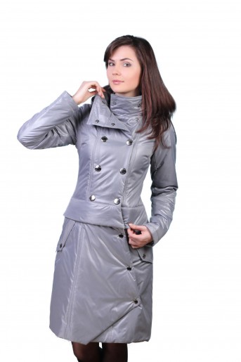 Оригинальное пальто-куртка с воротником стойкой. Легко трансформируется в куртку. Модель с капюшоном и двубортной застежкой на молнию и кнопки, снабжена удобными карманами с клапанами. Вам вряд ли удастся остаться незамеченной в этом пальто.